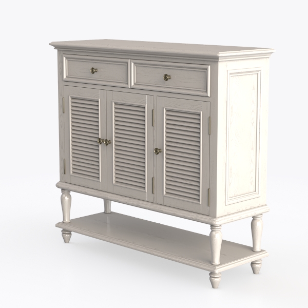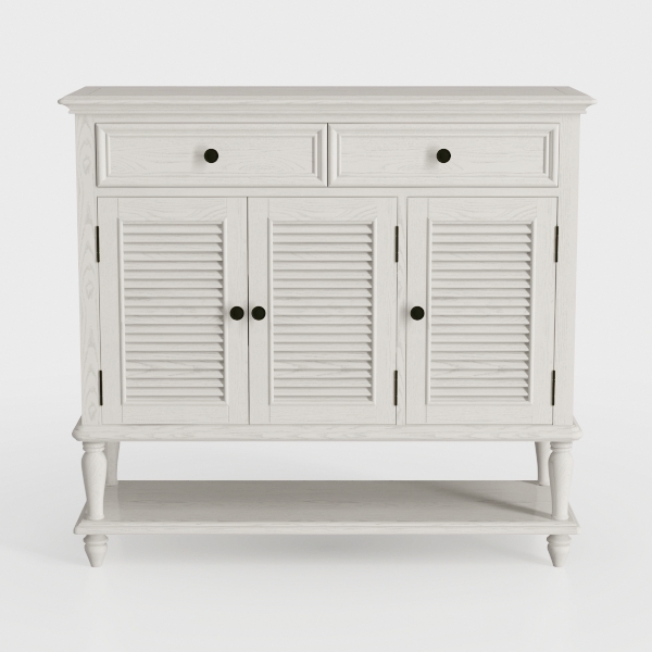 Inspired by classic shaker design, this cabinet blends simplicity with timeless charm. Its smooth, white-washed wood, soft grain, and matte finish create a warm, inviting texture. Clean lines and shutters add subtle visual interest. Ideal for a cozy living room or entryway, pairing with minimalist sofas and vintage rugs for a warm, rustic-modern vibe. Spacious shutters and lower shelf offer ample storage, while slender legs keep it light and airy, balancing function and style.