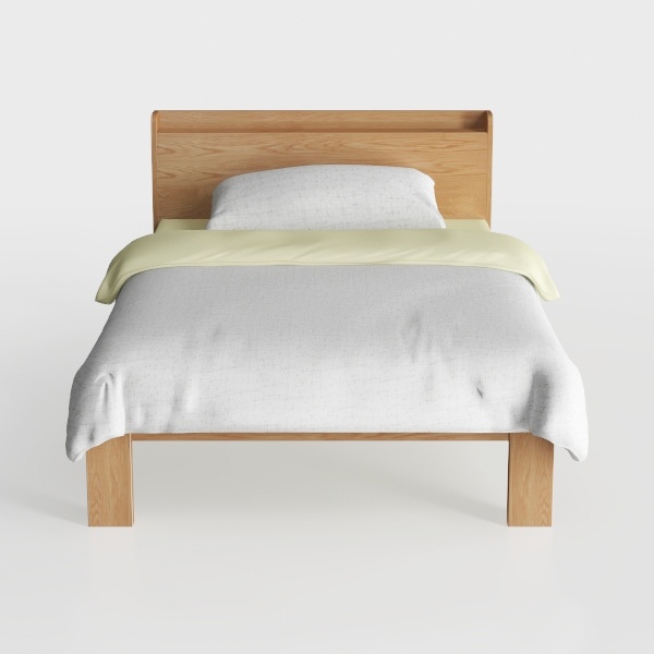 Inspired by minimalist nature, this bed merges warm oak with soft textures. The smooth oak headboard and lightweight linen bedding create a serene, airy vibe, while clean lines boost its understated elegance. Perfect for modern Scandinavian or Japanese-inspired bedrooms, it pairs well with neutral walls and natural fiber rugs. A sturdy frame and spacious under-bed area ensure durability and practicality, ideal for restful nights.