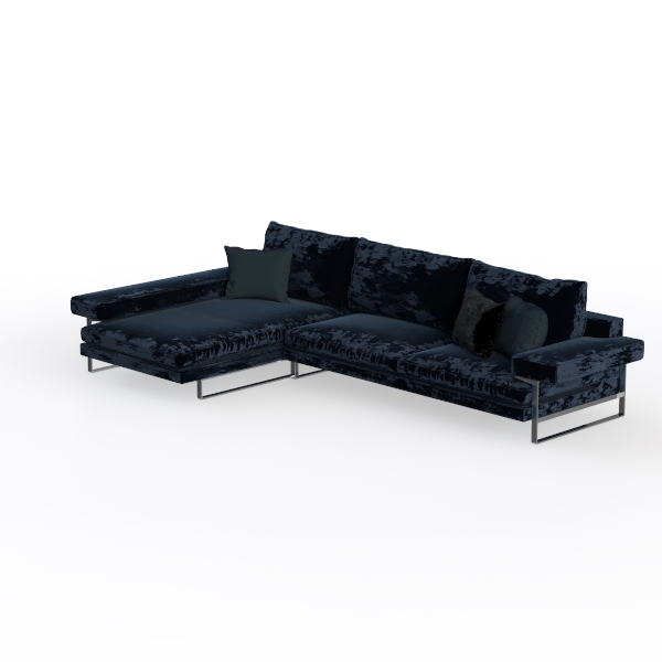 This elegant L-shaped sofa draws inspiration from mid-century modern design, balancing sharp, angular silhouettes with soft, enveloping curves. Its star feature is the sumptuous velvet upholstery in a rich midnight blue hue, which shimmers subtly under light, revealing intricate weaves that add depth to the visual appeal. The fabric feels surprisingly soft against the skin yet maintains structure, making it both comforting and durable—perfect for long hours of relaxation or lively conversations.