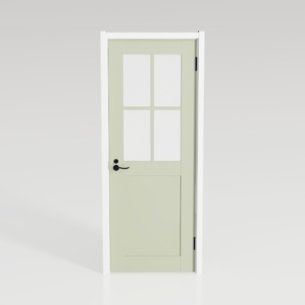Inspired by Scandinavian minimalism, this door blends natural textures with clean lines. Matte paint offers a smooth, subtle touch; soft mint green contrasts gently with crisp white frames, while glass panes add transparency, creating a clean yet warm aesthetic. Ideal for minimalist, Scandinavian, or Japanese-style spaces, pairing beautifully with light wood furniture and neutral-toned walls. Sturdy construction ensures durability, with balanced proportions and classic hardware enhancing both practicality and timeless charm.
