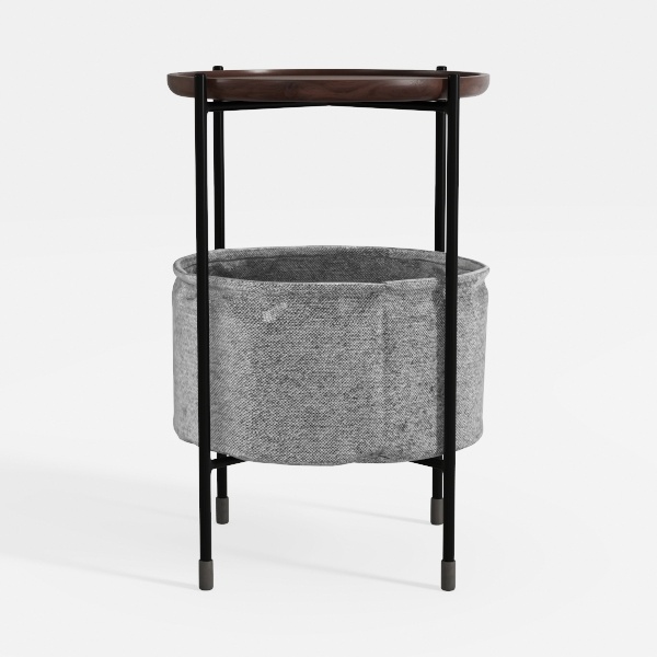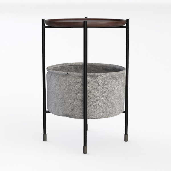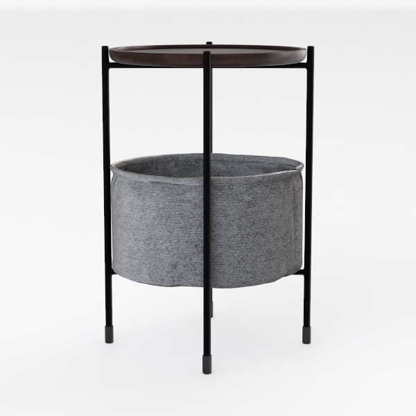 Blending organic warmth with industrial minimalism, this piece features a smooth wooden top and sleek matte black metal legs. A soft gray woven basket below adds textural depth, perfect for hidden storage. Ideal for modern minimalist or Scandinavian spaces, it pairs with potted plants and vintage lamps, balancing style and practicality.