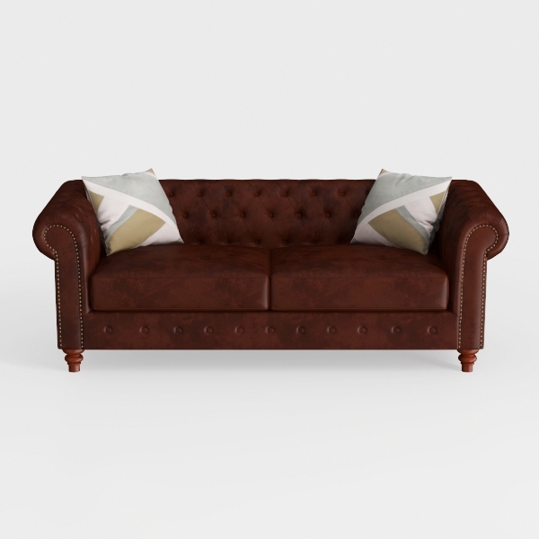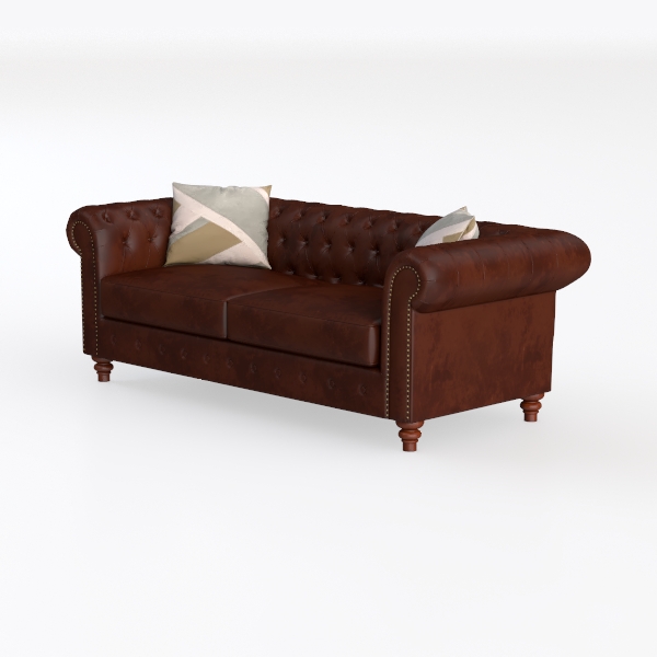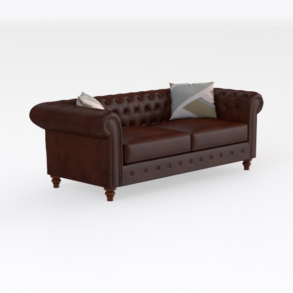 Rooted in the warm embrace of classic craftsmanship, this sofa takes inspiration from 19th-century English furniture—those iconic tufted designs that once graced stately homes, now reimagined with a modern, streamlined elegance. Its rich, deep-brown upholstery feels surprisingly soft to the touch, a buttery-smooth leather-like texture that yields gently under the weight of a sitter, while the meticulously placed button tufts create a subtle, rhythmic pattern across the backrest, adding depth without overwhelming simplicity.