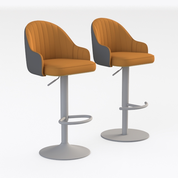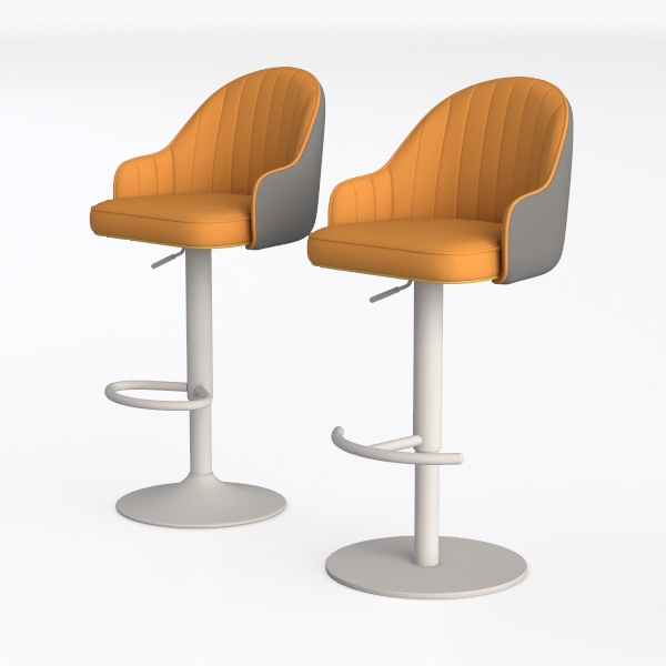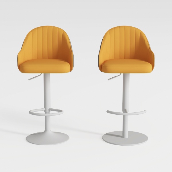 Designed to blend retro charm with modern minimalism, these bar stools feature soft, warm mustard upholstery with subtle vertical stitching, offering plush padding for cozy seating. The clean white metal base adds a fresh, airy contrast, enhancing the light, lively vibe. Ideal for industrial or Scandinavian kitchen islands or home bars, they elevate the space. An adjustable height lever allows personalized comfort, with a stable round base ensuring steady support.