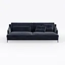 The sofa exudes a harmonious blend of modern sophistication and understated luxury, drawing design inspiration from the refined lines of mid-century modern aesthetics reimagined for today. Its deep navy upholstery, with a sumptuously soft, velvety texture, feels indulgent to the touch—rich and smooth, catching light to reveal subtle depth. The backrest’s gentle tufting adds a classic touch, evoking timeless craftsmanship while keeping the look uncluttered, creating a perfect balance of old-world charm and contemporary ease.