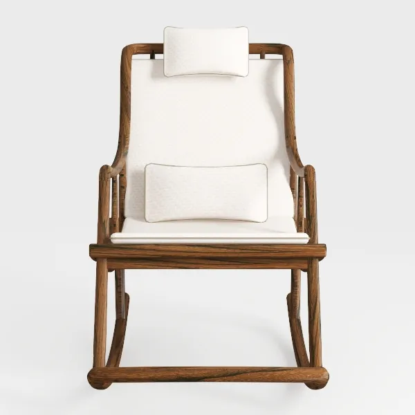 A classic wooden rocking chair with plush cream upholstery and intricate details, ideal for relaxing in a living area or bedroom, containing 73128 polygons.
