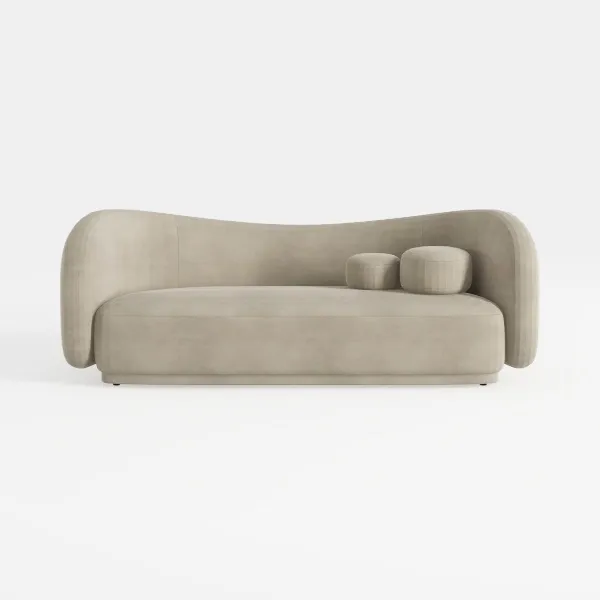 Inspired by organic forms found in nature, this contemporary sofa redefines elegance and comfort. Its smooth, flowing lines evoke a sense of serenity, making it a striking centerpiece for any living space. The luxurious fabric offers a soft, inviting texture, enhancing both tactile experience and visual appeal.