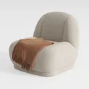 This armchair draws inspiration from organic, sculptural forms found in nature—think smooth river stones or soft cloud edges—blending modern minimalism with warm, approachable curves. Its body is wrapped in a luxuriously soft, cloud-like texture, the light gray hue of the upholstery exuding a gentle, neutral warmth that feels both calming and inviting. A casually draped terracotta throw with tasseled edges adds a subtle, earthy contrast, enhancing the piece’s lived-in charm without overwhelming its clean lines.