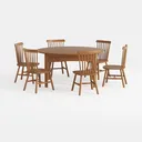 Inspired by rustic craftsmanship and natural warmth, this dining set features smooth oak wood grains and soft edges, creating a cozy, tactile feel. Its light honey hue and balanced proportions blend seamlessly into minimalist or Scandinavian-inspired spaces, ideal for family dining. The sturdy frame supports up to six people, ensuring durability and comfort during long meals, paired beautifully with linen tablecloths and potted greenery.