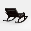 A modern rocking chair designed with a deep, tufted dark fabric seat and a minimalist black metal frame, boasting 360938 polygons for sophisticated lounge areas.