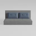 Inspired by contemporary minimalism, this stylish sofa effortlessly blends comfort and sophistication. The sleek gray upholstery offers a soft touch, while the two plush cushions in a deep blue hue provide a striking contrast, making it an eye-catching centerpiece in any living space. The tactile quality of the fabric invites you to relax and unwind, enhancing your overall lounging experience.