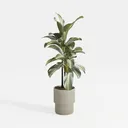 A 3D model of a golden vase with green plant, featuring gold-plated finish and vibrant green foliage and a modern minimalist aesthetic. It has high level of detail and is suitable for home decor and interior styling.