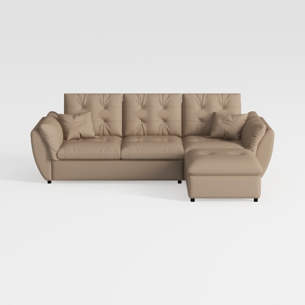 This elegant L-shaped sofa blends classic charm with modern simplicity, drawing inspiration from a harmonious mix of mid-century warmth and contemporary minimalism. Its design features soft, curved arms that frame the silhouette gently, while the timeless tufted backrest adds subtle texture—each button-tufted detail creating depth without overwhelming the clean lines.