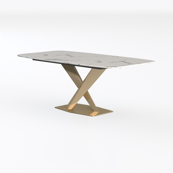 Drawing inspiration from the interplay of organic marble veining and sleek geometric forms, its smooth, cool marble top contrasts beautifully with the warm, polished gold cross base, creating a sense of refined luxury. Perfect for elevating modern minimalist living rooms or dining spaces, it pairs seamlessly with soft velvet sofas and delicate glass lighting fixtures. The sturdy X-shaped base ensures stability, making it both visually striking and practical for daily use.