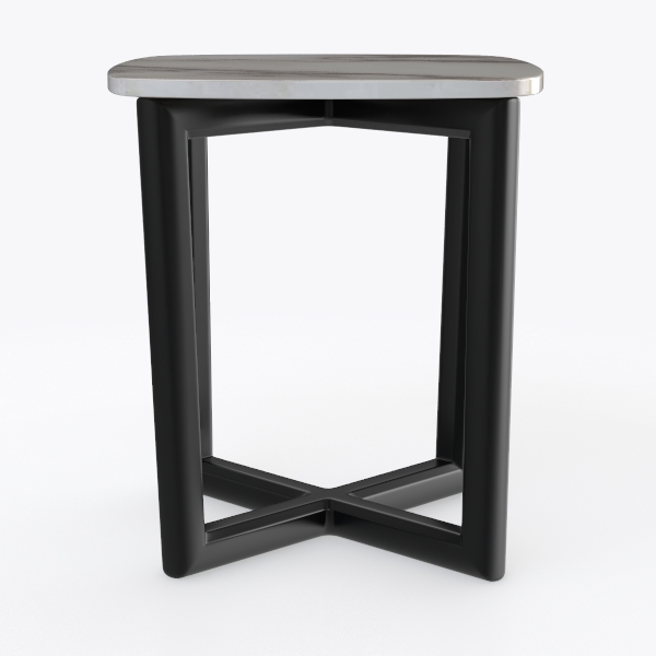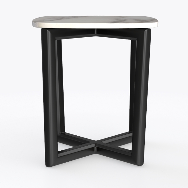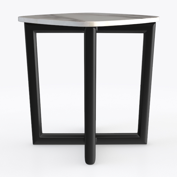 Inspired by geometric minimalism, this piece merges sharp lines with soft curves. The sleek, marbled top offers a cool, smooth touch, while the matte black frame adds a bold, grounded contrast—light yet sturdy to the eye. Perfect for modern, minimalist living rooms, it pairs beautifully with plush sofas, marble coffee tables, and warm-toned rugs, elevating space with understated elegance. A compact, functional surface holds drinks or decor, balancing style with practicality in every corner.