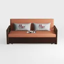 This sofa draws inspiration from the serene interplay of natural warmth and timeless design, merging the soft, earthy energy of terracotta with the enduring elegance of classic craftsmanship. Its plush, textured upholstery in a warm terracotta hue feels inviting to the touch—velvety yet durable, it wraps the body in comfort like a gentle embrace. The deep, rich brown wooden armrests and base, with their smooth, grainy textures, add a grounded contrast, their warm tones balancing the vibrant upholstery to create a visually cohesive, calming presence.