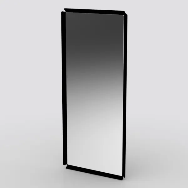 A 3D model of a mirror, featuring a circular glass surface and gold metal frame, with a modern minimalist aesthetic. It has sleek lines and high detail, suitable for home decor in bathroom or bedroom.