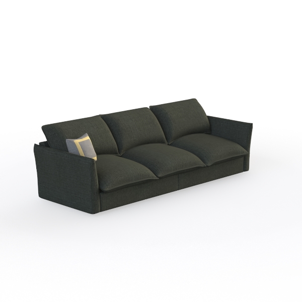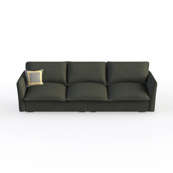 Inspired by the seamless fusion of Scandinavian minimalism and organic comfort, this sofa radiates a calm, contemporary vibe. Its deep sage green upholstery, crafted from a soft, textured fabric, feels warm and inviting to the touch, while the three generously sized, plump cushions invite you to sink in—offering exceptional support for relaxation. The clean, uncluttered silhouette, defined by slim, tapered legs and a streamlined back, creates a sense of spaciousness, with the muted tone adding a grounding, earthy feel that softens modern decor.