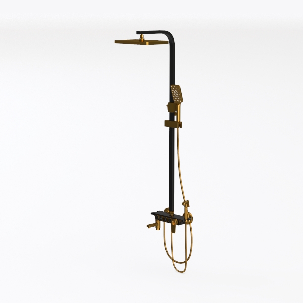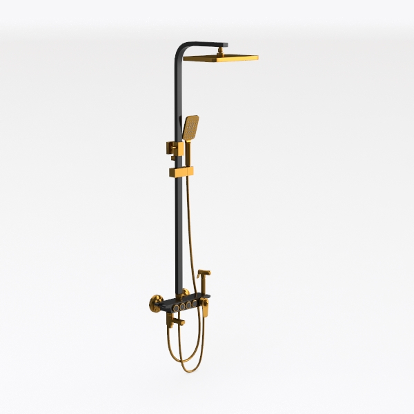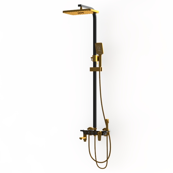 Premier Modern European Style Exposed Pipe Shower System with Single Handle Lever, 4 Inch Rainshower Head and Handheld Shower Wand, in Vintage Yellow Bronze Finish