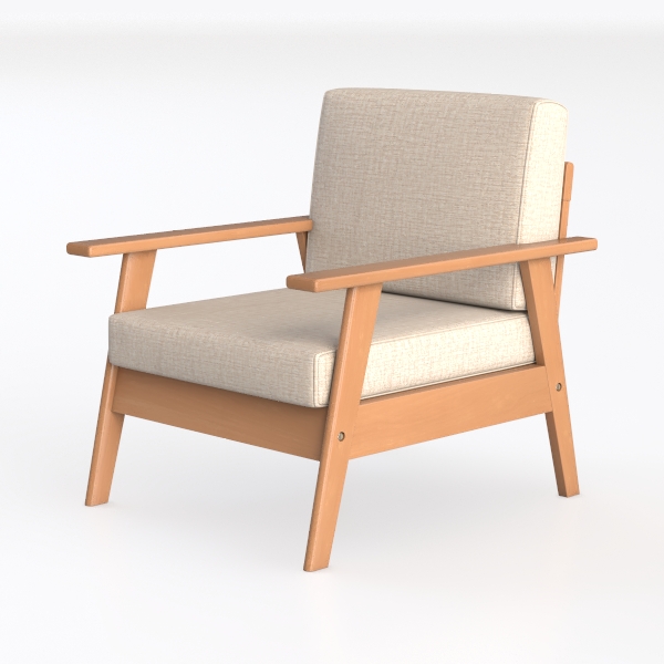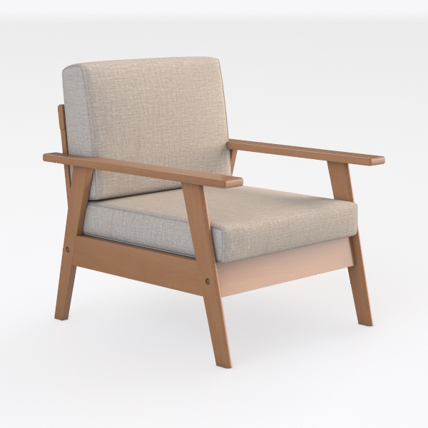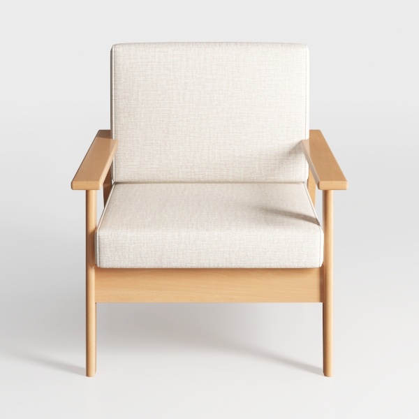 Crafted with understated elegance, this armchair takes cues from Scandinavian design principles, emphasizing simplicity, functionality, and harmony with natural elements. Its seat and backrest feature a soft, textured beige upholstery that invites gentle touches, while the light oak wooden frame adds warmth—its smooth, sanded surface enhancing the chair’s tactile appeal. The minimalist silhouette, defined by straight, unadorned lines and a neutral color palette, feels light and airy, creating a calm, uncluttered presence that complements diverse decor.