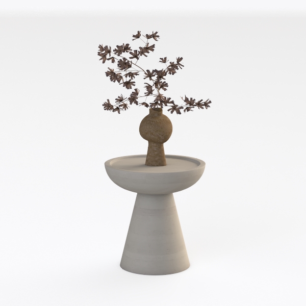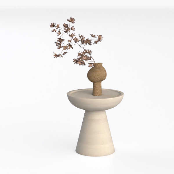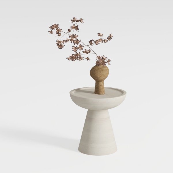Inspired by organic nature, it blends smooth stone-like textures with delicate dried florals. The light, matte white surface feels cool and tactile, contrasting softly with the rough, earthy tones of the stone vase, creating a serene, minimalist vibe. Perfect for Scandinavian or wabi-sabi living rooms, pair it with linen sofas and wooden coffee tables; its stable base and circular top offer a practical, elegant spot for small decor.