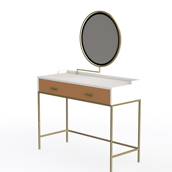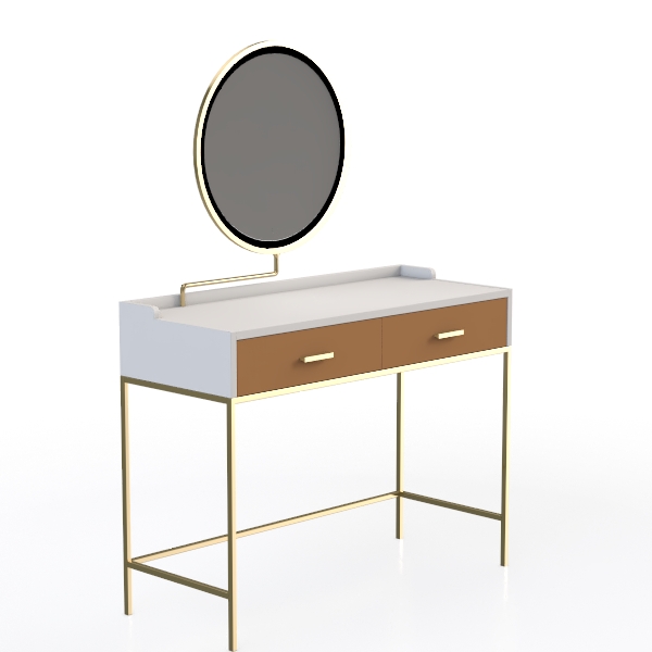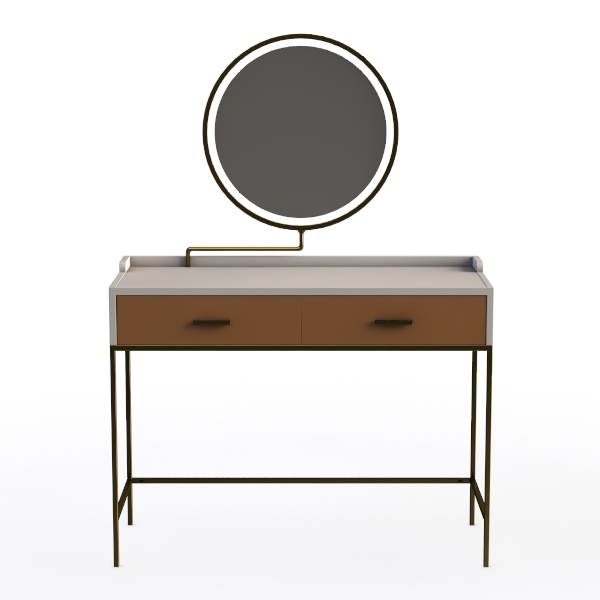 Inspired by balancing modern simplicity with refined details, this vanity blends light countertops and warm brown drawers, complemented by sleek metal frames and a circular, softly lit mirror. Its clean lines and matte finish craft a calm, elegant vibe, perfect for a modern minimalist or contemporary bedroom. Pair with neutral walls and soft textiles, and the two smooth drawers provide ample storage, while the adjustable light ensures effortless, well-lit makeup routines.