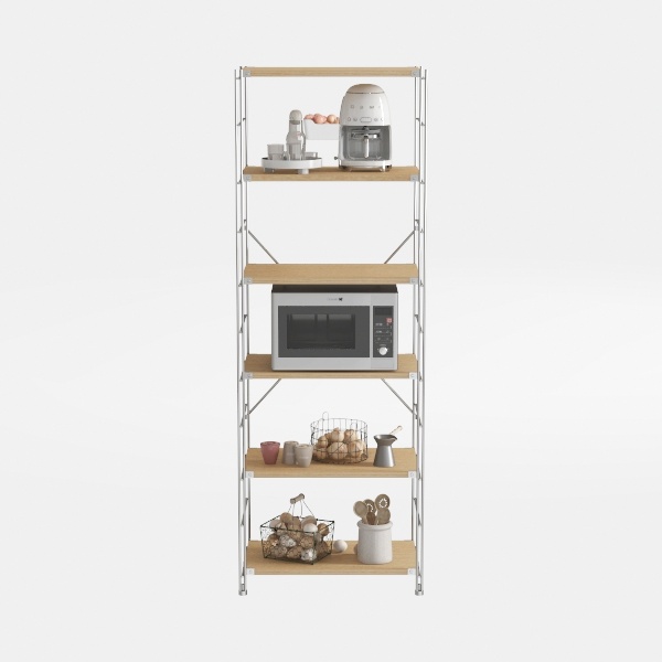 Designed with minimalist principles, this storage unit blends functionality and sleek aesthetics to optimize small spaces. Warm wooden shelves contrast with the sleek metal frame, creating a light yet sturdy, modern and inviting look. Perfect for modern, clutter-free kitchens or living rooms, it pairs with appliances and essentials, while multiple tiers offer ample storage—from microwaves to spices—ensuring organized access to daily items.