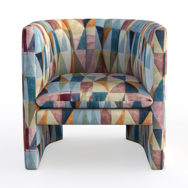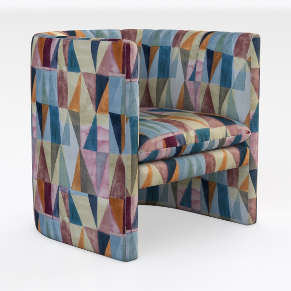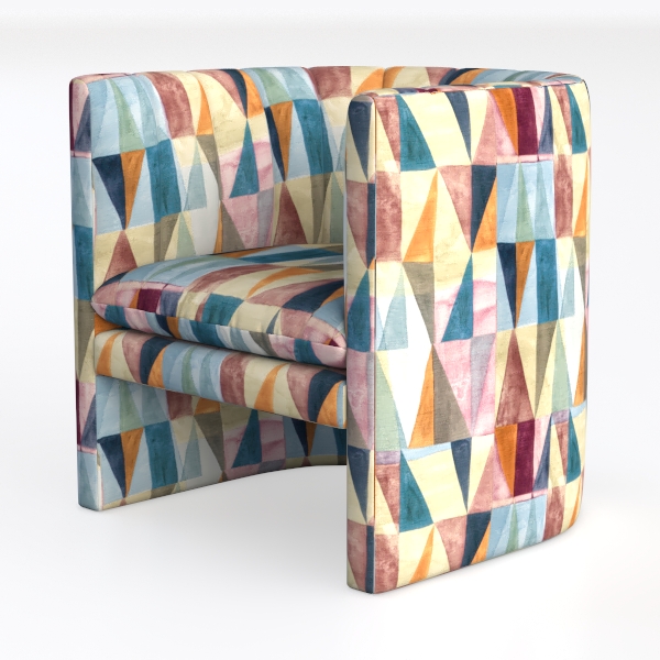 Designed with inspiration from bold abstract art, this armchair features a vibrant geometric pattern of triangles in soft, textured fabric. The dynamic color palette—blending warm tones and cool accents—creates a lively yet balanced look, adding energy to any space. Perfect for a modern living room or cozy reading corner, it pairs beautifully with marble coffee tables and metallic floor lamps. Plush padding and wide armrests ensure deep, comfortable seating, making it both stylish and practical for daily relaxation.