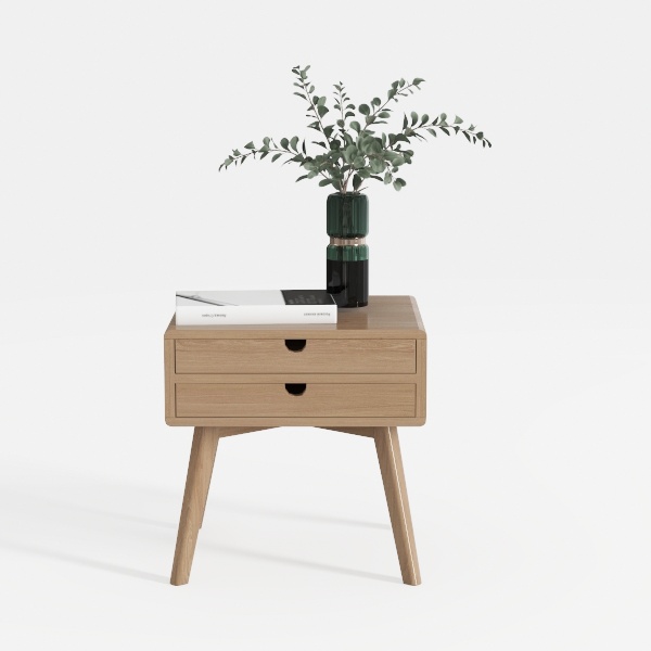 COSTWAY 2PC Mid Century Modern 2 Drawers Nightstand in Natural Sofa Side Table