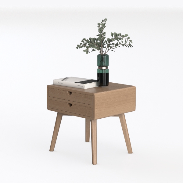 100% Solid Wood Night Stand Set of 2, Mid Century Modern Nightstand, Natural Wood Nightstands, Small Nightstand with Two Drawers, Bedside Tables for Bedroom(19.69" H)
