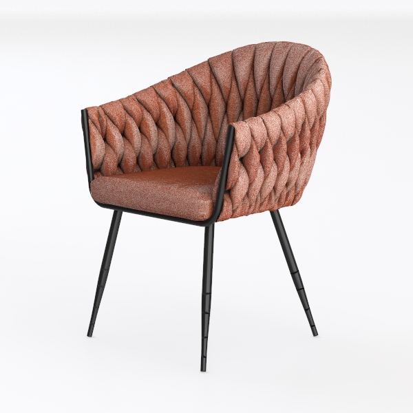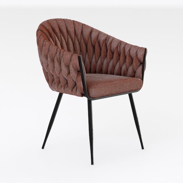 Woven Dining Chairs Set of 4, Modern Hand Weaving Dining Chair with Black Metal Legs, Upholstered Club Chairs with Black Frame for Dining Room, Kitchen, Vanity, Brown