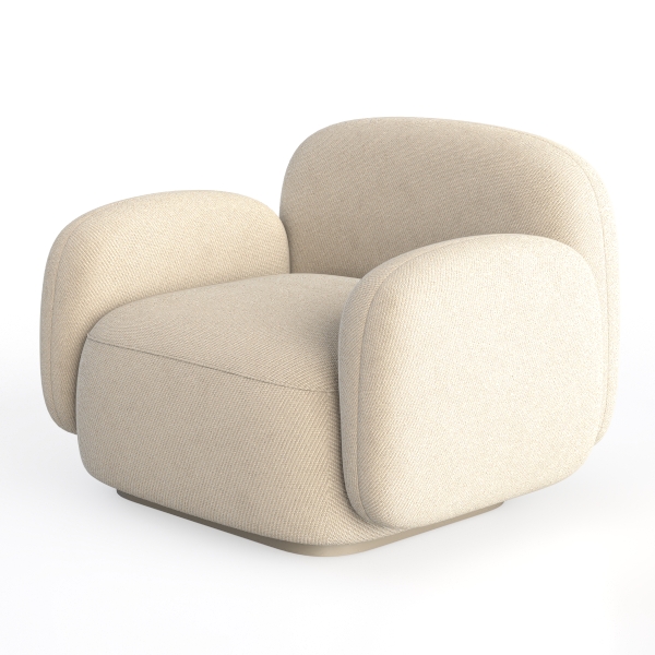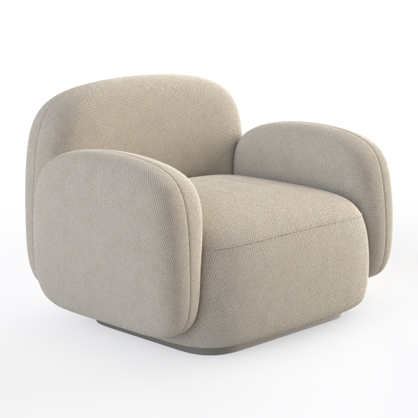 Inspired by organic, sculptural forms, this armchair features soft, flowing lines. Its warm beige textured fabric feels plush, with a smooth, rounded silhouette that radiates calm and comfort. Ideal for modern minimalist, Scandinavian, or contemporary living rooms, it pairs beautifully with sleek wooden coffee tables and potted greenery, enhancing the space. A generously deep seat and supportive curved arms ensure exceptional relaxation, blending design and cozy retreat.