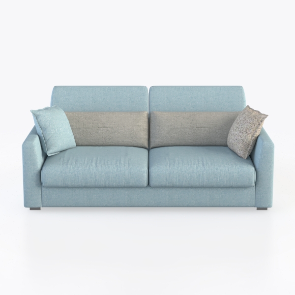This sofa radiates a serene blend of modern minimalism and organic warmth, inspired by soft coastal hues and the quiet elegance of natural materials. Its soft sky-blue upholstery, crafted from a breathable, subtly textured fabric, feels gently plush to the touch—light enough to feel airy, yet dense enough to cradle you in comfort. Two neutral gray lumbar pillows, paired with a textured, light-patterned throw, add subtle contrast without disrupting the clean, uncluttered lines, while the low, wide arms invite casual lounging.