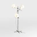 A 3D model of a Floor Lamp, featuring white spherical shades and metal frames and a minimalist aesthetic. It has low polygon count and is suitable for indoor spaces like living rooms or bedrooms.