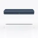 Designed with mid-century modern elegance and contemporary minimalism, this piece blends a deep midnight-blue, smooth-textured top with ultra-transparent acrylic legs, creating an airy, uncluttered vibe. Its sleek metal under-rail adds subtle stability, while hidden drawers offer practical storage. Ideal for a minimalist home office or cozy bedroom nook, it pairs beautifully with light wood accents and potted plants, enhancing any space with understated sophistication.