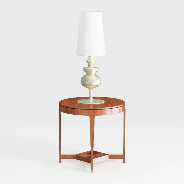 Modern Solid Wood Round Side Table With Table Lamp 3D Model