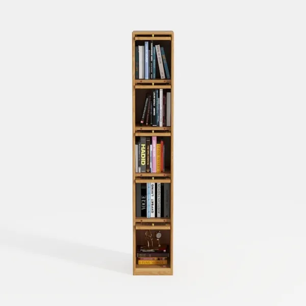 This elegant piece draws inspiration from the harmonious blend of minimalist aesthetics and practical living, prioritizing clean lines and functional utility without sacrificing visual charm. Crafted with warm, natural wood grain, its surface feels smooth yet subtly tactile, inviting gentle interaction and infusing the space with organic warmth. The vertical, uncluttered design—with evenly spaced shelves and a light, neutral hue—creates an airy presence, making it ideal for both compact and open rooms.