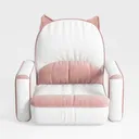 This charming piece draws inspiration from the whimsical allure of feline silhouettes, blending playful design with cozy functionality. Crafted with soft white upholstery and delicate blush pink accents, its rounded armrests and a slightly raised backrest mimic the posture of a contented cat, adding a touch of warmth and personality to any room.