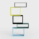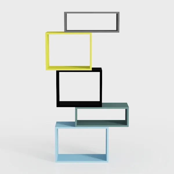 Inspired by geometric abstraction and modern minimalism, this staggered shelf features a lively color mix—sunshine yellow, deep black, soft gray, and cool blue—crafting dynamic visual layers. Smooth, sleek surfaces with a subtle matte finish add tactile charm, while varying heights provide flexible storage for books, decor, or plants. Ideal for modern, Scandinavian, or industrial living rooms/studies, it merges style and practicality effortlessly.