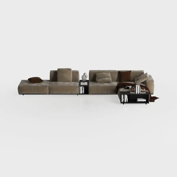 Perfect for a modern-luxe or Scandinavian-inspired living room, it pairs effortlessly with marble or travertine coffee tables, brass-accented floor lamps, and woven jute rugs, layering contrast to avoid monotony. Functionality meets style here: the modular design offers room for 4-5 people to gather, while integrated side tables provide handy spots for books, mugs, or decor, ensuring the space feels lived-in yet polished.