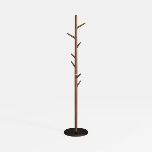 Inspired by natural tree branches, this freestanding coat rack blends organic elegance with modern simplicity. Warm brown wood, smooth texture, and slender, evenly spaced branching arms create a tactile, earthy look, while clean vertical lines add sleekness. Sturdy circular base supports coats, bags, hats—ideal for modern, Scandinavian, or minimalist entryways, bedrooms, or living room corners, balancing utility with understated charm.