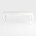 This elegant piece draws inspiration from the timeless allure of 18th-century European classical design, merging the intricate artistry of rococo motifs with modern minimalism. Its pristine white surface, smooth to the touch, features delicate, handcrafted floral and vine carvings along the tabletop edge, adding subtle depth without overcomplicating the eye. The slender, curved legs, tapering gently to the floor, infuse it with a light, airy presence, making it feel both grounded and ethereal in space.