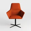 A contemporary orange armchair designed with plush upholstery and a sturdy black swivel base, containing 123758 polygons for detailed rendering.