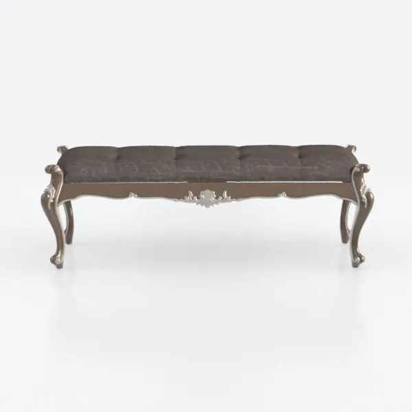 Inspired by classic French design, this elegantly crafted bench brings a touch of sophistication to any space. The juxtaposition of a sumptuous dark fabric upholstered seat and intricate detailing on the sturdy wooden base creates a striking visual impact. Its soft texture invites you to settle in, while the meticulously designed legs offer a graceful silhouette that enhances the overall aesthetic.