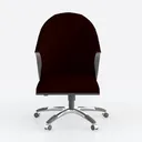 This contemporary study chair features dark brown fabric upholstery, a sleek chrome five-star base, and 222980 polygons, suitable for office use.