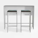 This modern bar counter set features white laminate surfaces and dark upholstered stools, ideal for a dining area or home bar, with 45825 polygons.