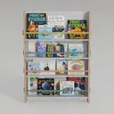 Designed to spark curiosity, it draws inspiration from cozy children's reading nooks, blending playful elements with functional storage. Warm wood grains and soft, pastel bars create a gentle, inviting texture, while vibrant kids' books add pops of color, making the space cheerful and nurturing. Perfect for a cozy kids' room, it pairs beautifully with soft rugs and playful decor, enhancing a modern, child-friendly vibe. Sturdy, spaced shelves securely hold many books, with easy access for little readers to explore stories independently.