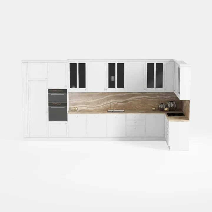 A contemporary cabinet set designed for modern kitchens, featuring a minimalist aesthetic with smooth neutral finishes and 370974 polygons for detailed interiors.