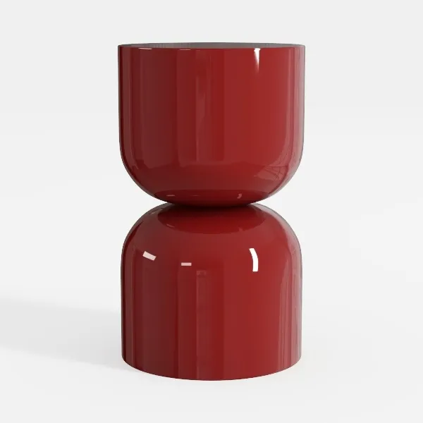Inspired by mid-century modern design principles, this home piece merges geometric simplicity with organic curves, creating a functional yet sculptural accent. Crafted with a glossy, high-shine finish, its surface reflects light softly, giving the rich, deep red hue a luminous, almost polished look that catches the eye without overwhelming the space. The smooth, cool-to-touch material invites gentle interaction, while the balanced stacking of two rounded forms—an upper, slightly concave bowl and a lower, stable base—adds visual intrigue and structural harmony.