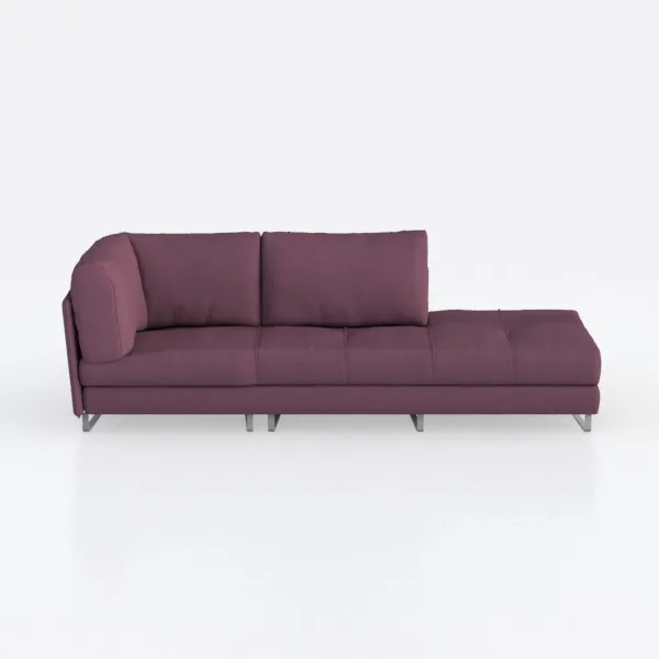 This piece draws inspiration from the seamless blend of modern minimalism and organic warmth, balancing clean lines with a soft, inviting presence. Crafted with a plush, textured fabric in a rich berry purple, it feels as comforting as it appears—gentle to the touch, with subtle sheen that catches light softly. The sleek, brushed silver metal legs provide a crisp contrast, elevating the design without overshadowing its cozy essence.