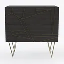 Inspired by geometric art, this cabinet blends warm, rich wood grain with sleek gold metal lines, accentuating its structure and crafting a modern-luxury vibe. Its two spacious drawers offer hidden storage, while delicate gold legs keep it light and airy, ideal for living rooms or bedrooms paired with minimalist sofas and marble accents.